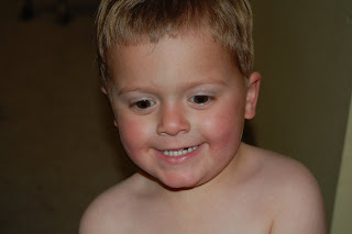 He doesn't know he looks kind of stupid. The "after" shots are awful, I know. He refused to sit even remotely still while I was taking them and I figure there's plenty of time in the next few days to see the haircut in all it's glory. You get the gist.Oh, and a brief moment of sleep that he blessed me with today, I broke out my new angel-winged feet (new shoes came--hooray!) today. Check them out, and my freakish camera angle that makes my legs look weird. They are "resting" here after their little joyful run and the rest of the raggedy running that the boy has been having me do for him all day. "I'm thirsty," "I want crackers (that I won't eat but instead, push around a bowl for three hours,), "I'm tired, hold me," "I'm hot," "I'm cold," "Get me my monkey." Grrrr. They test our love when they don't feel good, don't they? Oh but it's all worth it because he asked me to rock him today for about thirty minutes, actually rock him in the big ol' Lazy-Boy. Nothing beats snuggling with your baby boy when he's actually a big boy, and rocking with him like he's still the little bundle you brought home from the hospital, even if his hot breath on your neck smells like barf. I could've done it all day.